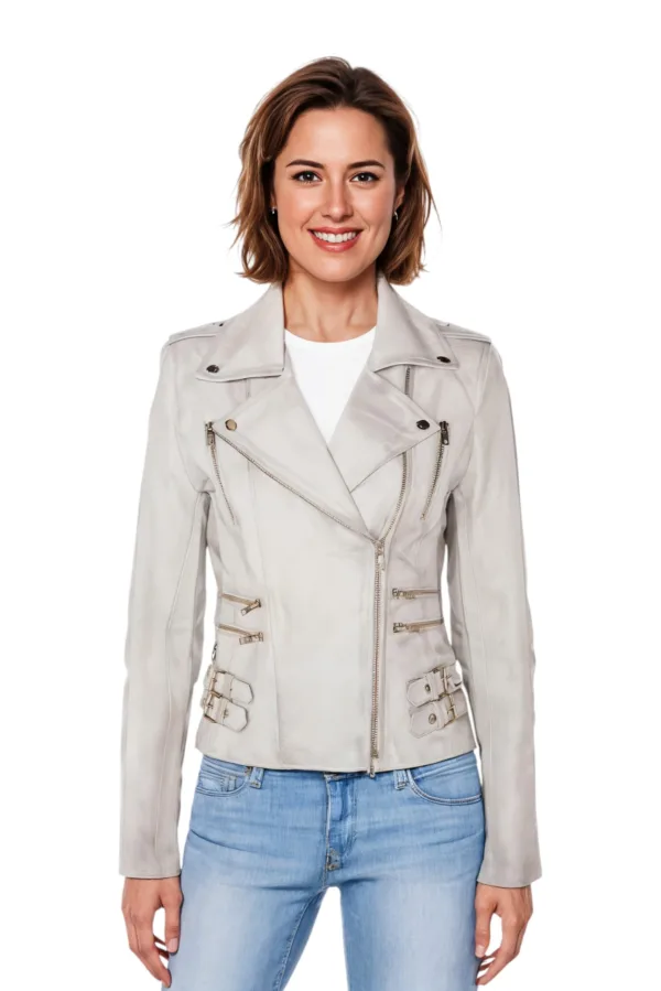 Dames leren witte Brando bikerjack – Constantia Prijzen