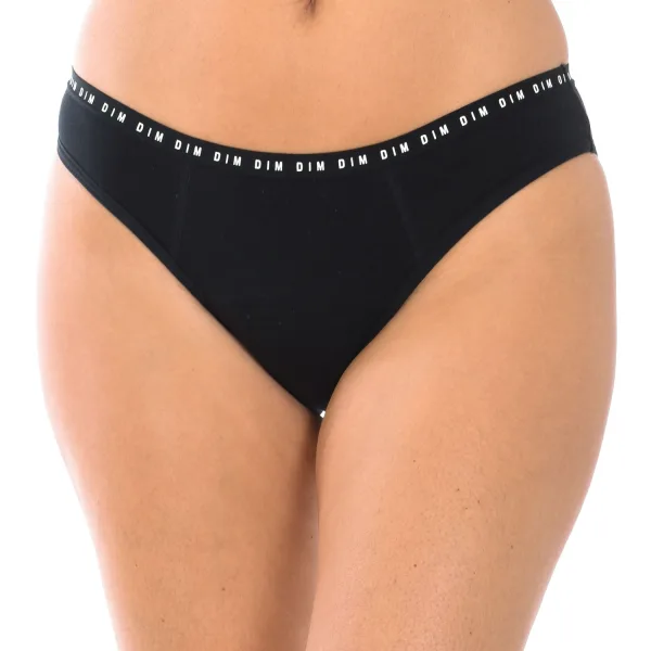 Menstruatieslip van het merk DIM. Medium flow slip die tot 100 wasbeurten herbruikbaar is. Comfort en bescherming. Het heeft geen label voor meer comfort. Anti-geur en anti-lek systeem. Dag en nacht: Tot 12 uur bescherming. Je kunt ze alleen gebruiken of als aanvulling op andere menstruatieproducten. Kan elke dag van de cyclus gebruikt worden. Combinatie van verschillende materialen: 1. Zeer zacht katoenen materiaal in direct contact met de huid. Absorbeert vloeistof dankzij de ontwikkelde stof. 2. Absorbeert vloeistof dankzij de ultra-absorberende pluche stof. 3. Houdt vocht vast dankzij een waterdichte laag die lekken voorkomt. 4. Buitenmateriaal dat geurtjes neutraliseert. Samenstelling: Body: 93% Katoen, 7% Elastaan ; Overtrek: 100% Katoen ; Secundair materiaal: 80% Polyamide, 20% Elastaan. Onderhoud: Grondig spoelen met koud water. Machinewasbaar op 30º. Aan de lucht drogen. Het gebruik van een strijkijzer is niet toegestaan. Mag niet in de droger. Geen bleekmiddel gebruiken.