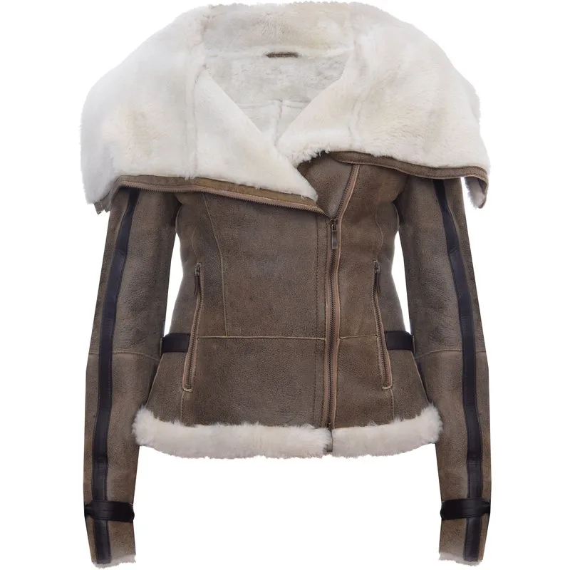 Dames merino schapenvacht pilotenleren jas-Asmara Prijzen