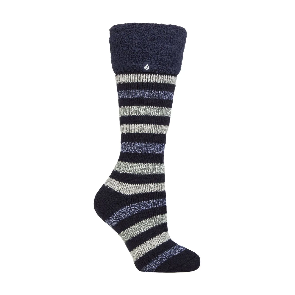 Heat Holders Dames Cosy Cuff Boot Socks: Heat Holders zijn simpelweg de warmste thermosokken en accessoires die je kunt kopen! Ze begonnen in 2008 met de visie om de ultieme thermosok te creëren, warmer dan wat dan ook op de markt. Houd je benen en voeten warm met deze omgeslagen boottubben. Als je in de winter last hebt van koude benen en voeten, dan beschikken deze lange sokken over een dikkere, thermische voering om ervoor te zorgen dat je langer warm blijft. Gemaakt met Heat Holders Brushing, maximaliseert hun deskundige borsteling het aantal warme lucht dat in elke sok wordt vastgehouden voor ongeëvenaarde warmte en comfort de hele dag door. Ze hebben ook een hoge tog-rating van 2.3 dankzij de innovatieve breitechnologie van Heat Holders, die gebruik maakt van UK GEPATENTEERDE lange lussenkussens. Combineer deze lange sokken met elke paar laarzen, of je nu gaat wandelen of deze gestreepte sokken wilt laten zien, ze zien er prachtig uit bij lage enkelboots! Deze sokken zijn verkrijgbaar in damesmaten 4-8 UK, 37-42 EU, 5-9 US. Extra productdetails: - Cosy Cuff Boot Socks - Dames thermosokken - Officiële Heat Holders sokken - Heat Holders garen - Omgeslagen cuff - Heat Holders Brushing - Dikke thermische voering - Kleurrijke strepen en ontwerpen - Hoge tog-rating - Gestreept ontwerp - Marineblauwe en roze strepen - Maten 4-8 UK, 37-42 EU, 5-9 US