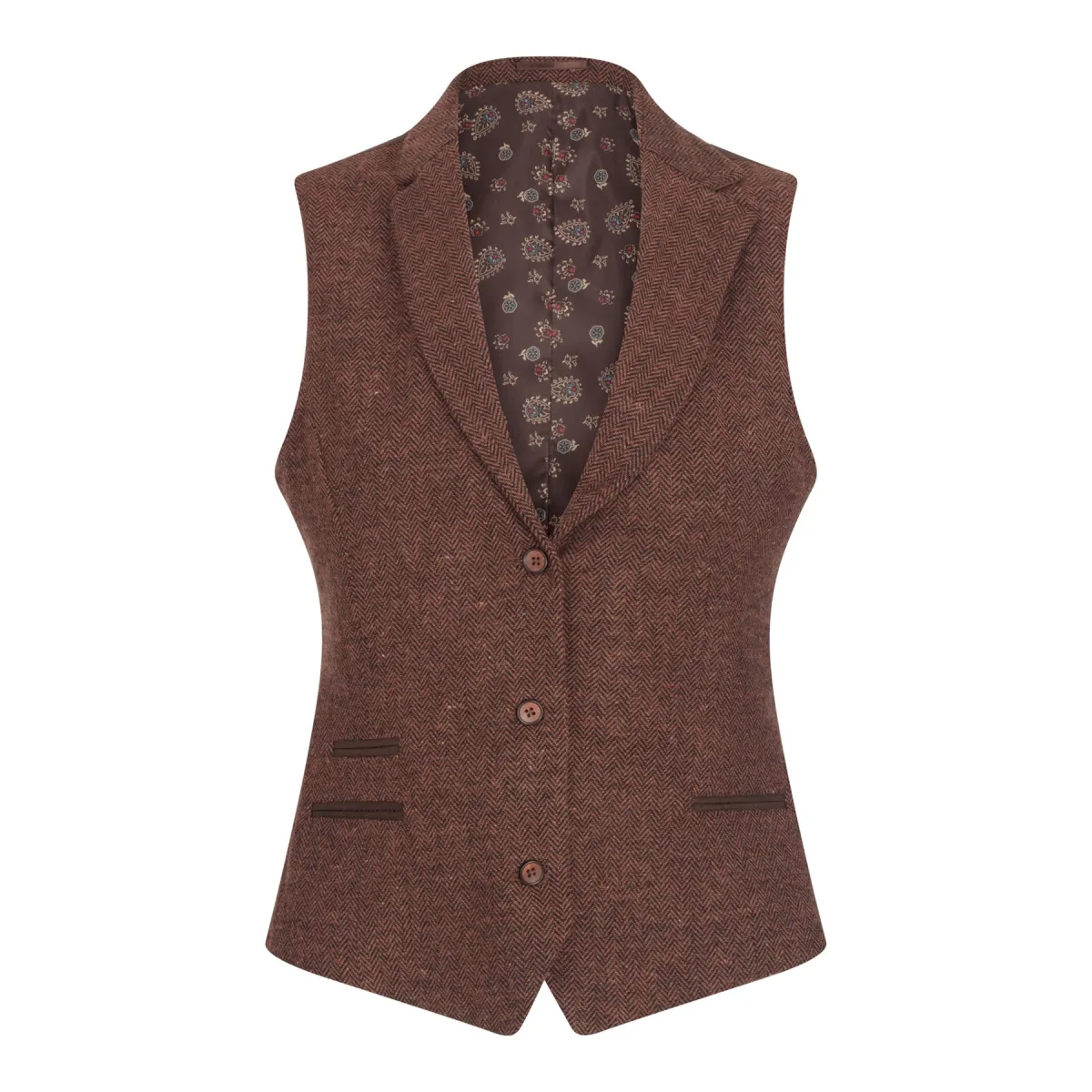 | Prijsgeschiedenis voor Dames roestbruin visgraat wollen tweed gilet met ruitjesmotief | |