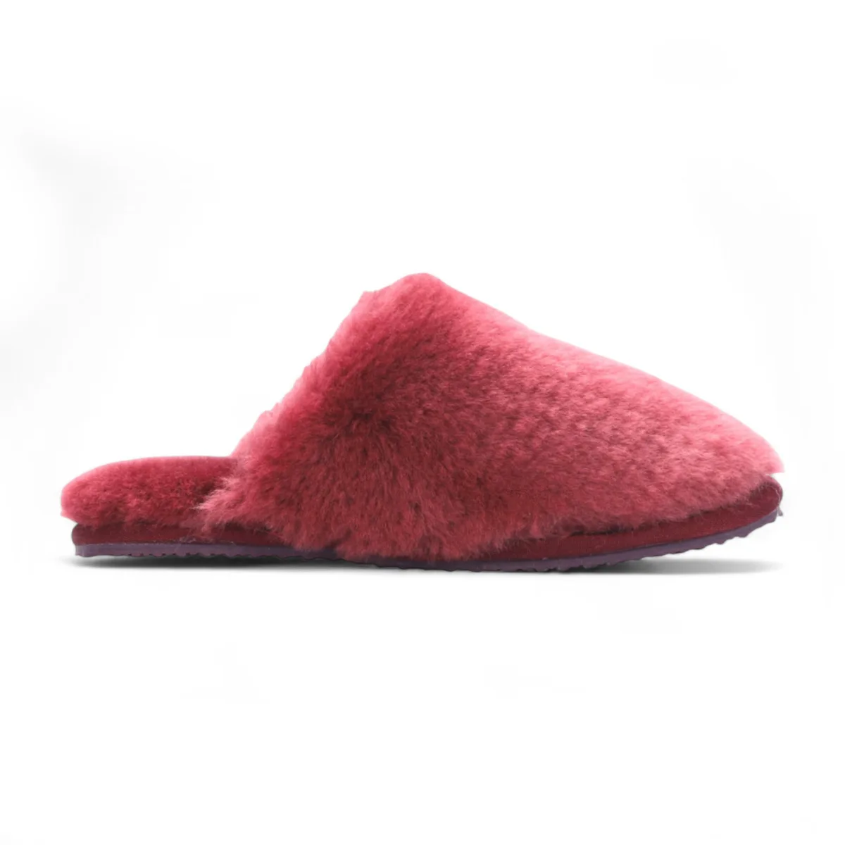 Dames schapenvacht pantoffels bordeauxrood warme winterbont muiltje Aurora