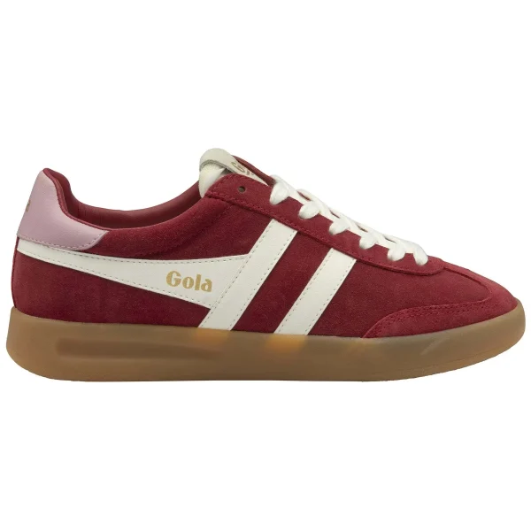 Met Gola's kenmerkende handschrift krijgt Cyclone voor dames een seizoensgebonden update met een geheel nieuwe suède kleurstelling. Luxueus dieprood en off-white combineren in deze dames trainer met een vleugje snoeproze voor een trendy relevante combinatie, perfect afgewerkt met een doorzichtige rubberen zool. Voor kleurtrend liefhebbers is er geen betere manier om de winnende kleurcombinaties van het seizoen te dragen dan met een paar Gola trainers.Suède trainersDames sneakersGola zijvleugelbrandingAuthentiek Gola ontwerpKleuraccenten