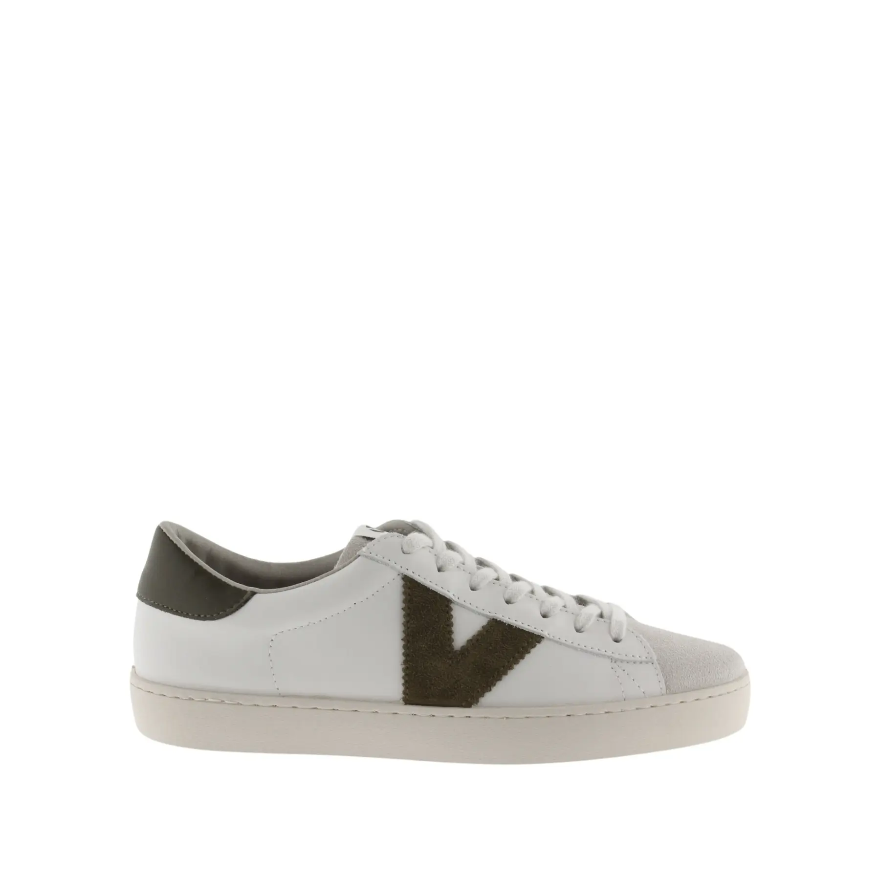 100% chroomvrije lederen sportschoenen met een zilveren medaille in de LWG-certificering, die een verantwoord gebruik van water, energie en afvalbeheer in het looiproces garandeert. Het vleugje kleur wordt bereikt door de V van Victoria en de toon-op-toon hiel. Gespleten leren teen. Gemaakt in Spanje.Chroomvrije rundleder buitenkant met zilveren medaille in LWG-certificering en splitleren teen.Textiel interieur.Zool gemaakt met plantaardige oliën in plaats van minerale oliën.