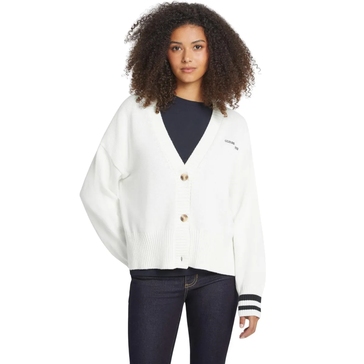 - Bij bol.com kun je Guess Jeans J Emb Cardigan Wit XS Vrouw kopen voor slechts €77,99 , dat is 8% goedkoper dan bij Sneakin (€84,70).