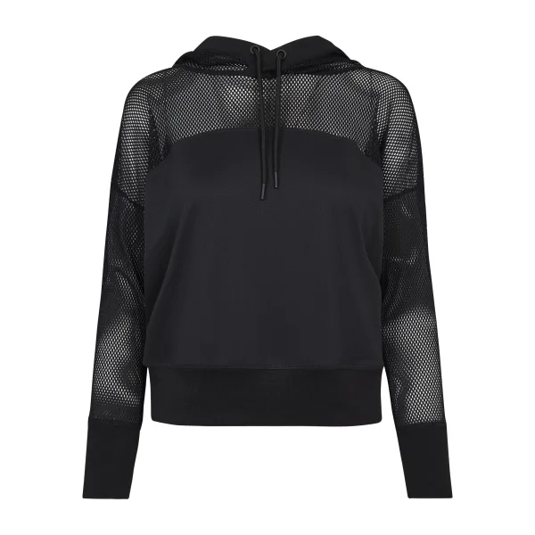 Supercomfortabele hoody: losjes en luchtig, de dames Mesh Hoody heeft een coole mix van stoffen die hem echt uniek maakt. Jerseybreiwerk op de mouwen en schouders, fijngestructureerde stof op de rest van het bovenlichaam en een grote capuchon van gaas zijn slechts een klein deel van de aantrekkingskracht van deze hoody.