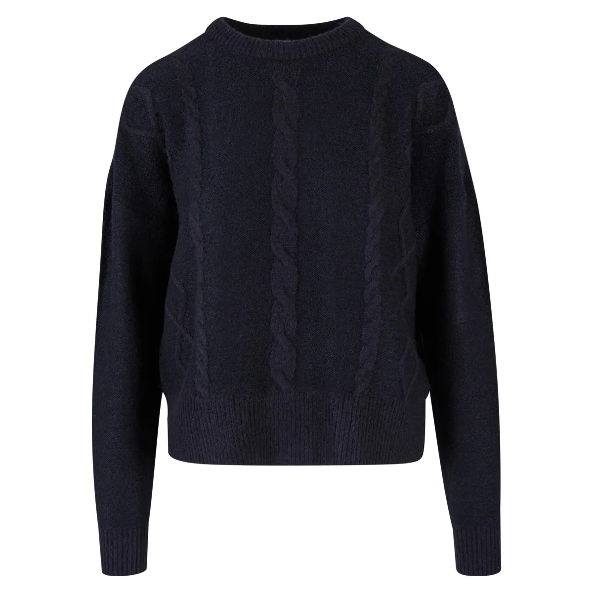 Met een driedimensionaal gekabeld patroon op de voor- en achterkant is deze gebreide damestrui een echte blikvanger. De oversized snit met brede, afgezakte schouders geeft hem een zelfverzekerde nonchalance. De ronde hals en brede geribde boorden aan de mouwen en zoom maken de look look compleet. De gebreide damestrui is gemaakt van een gladde mix van acryl en polyester. Materiaal informatie Buitenstof 1: 73% Acryl 27% Polyester, 5 gg