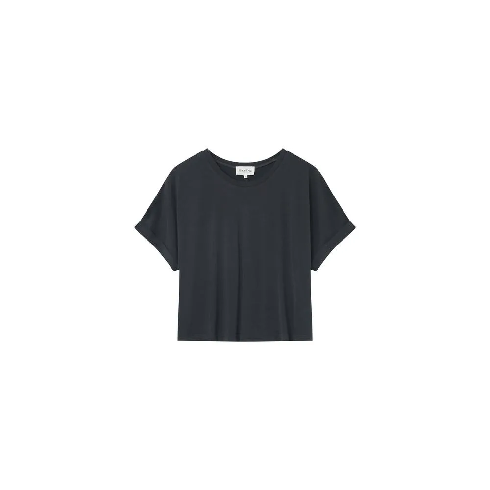 T-shirt met ronde hals. Korte mouwen met revers en verspringende armsgaten. Casual stijl. Samenstelling: 70% MODAL, 30% Polyester