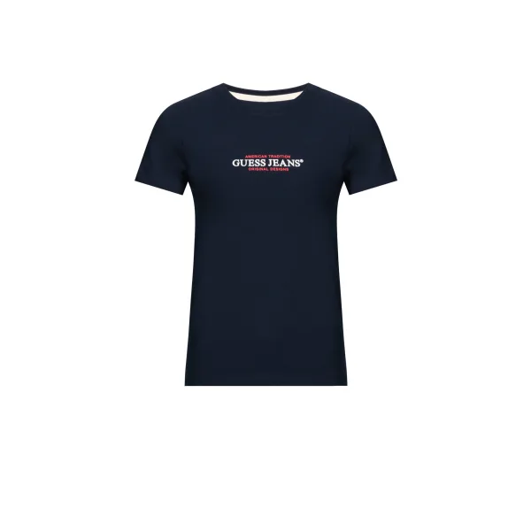 Guess American Tradition dames T-shirt van blauw katoen. Authentiek Guess-kledingstuk - streetwear/sportwear design van Guess - Guess voor modebewuste vrouwen, perfect voor dagelijks gebruik - dit blauwe Guess T-shirt is een geweldige aanvulling op je garderobe - comfortabele katoenen stof - klassiek - American Tradition -