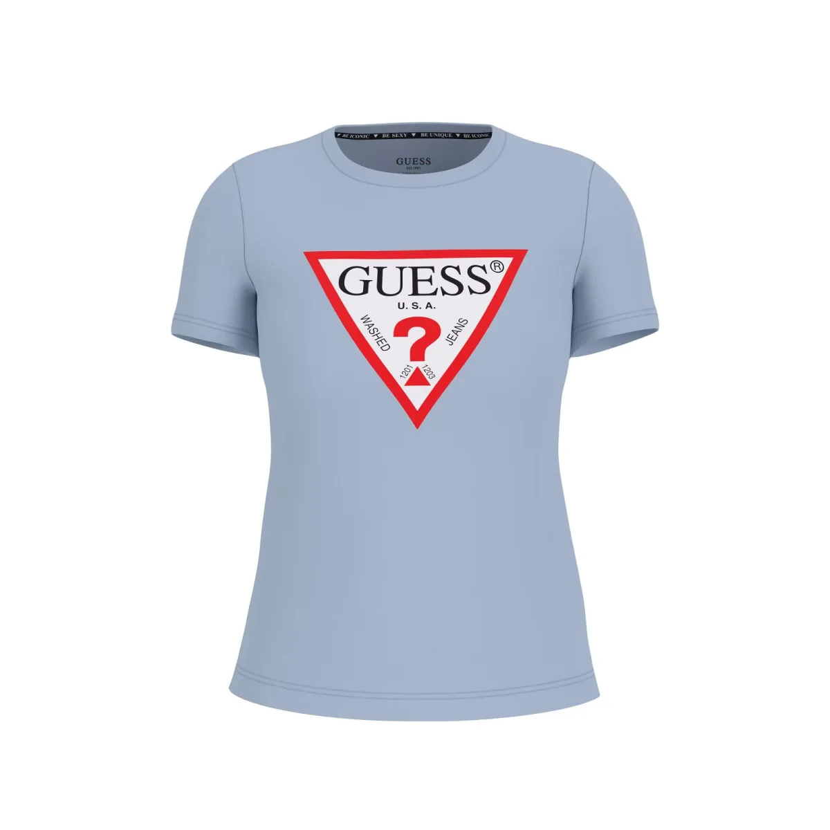 Merk: Guess Geslacht: Vrouwen Type: T-shirts Seizoen: Lente/Zomer PRODUCTDETAILS • Kleur: lichtblauw • Sluiting: instap • Mouwen: kort • Halslijn: ronde hals • Artikelcode: W1YI1B I3Z14 SAMENSTELLING EN MATERIALEN • Samenstelling: 100% katoen • Wassen: machinewas op 30°