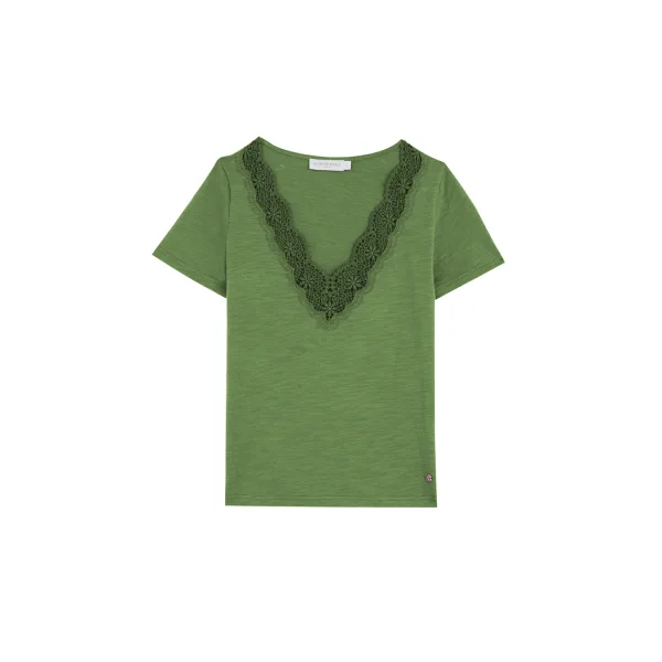 Mis dit trendy T-shirt TALSMO niet. Het heeft een recht model, korte mouwen en een V-hals. Eigenschappen:Materiaal: KatoenKorte mouwenV-halsRecht model