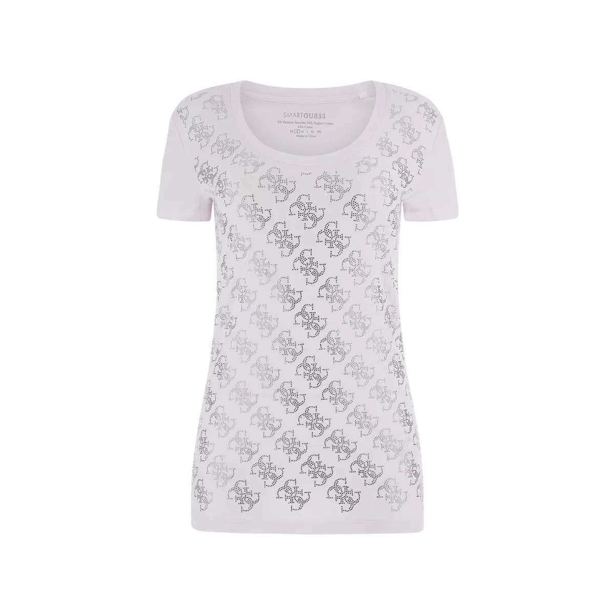 Wit katoenen Guess T-shirt voor dames met strass-steentjes (maat 4G). Authentiek Guess-merkkledingstuk - streetwear/sportkleding design van Guess - Guess voor modebewuste vrouwen, perfect voor dagelijks gebruik - Dit witte Guess T-shirt is een geweldige aanvulling op je garderobe - Comfortabel katoen - Klassiek - Strass-steentjes (maat 4G)