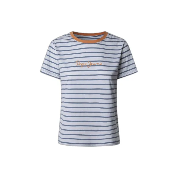T-shirt essentieel met korte mouwen en een ronde hals, met een witte achtergrond en overal strepen, met het klassieke logo van Pepe Jeans aan de voorkant.