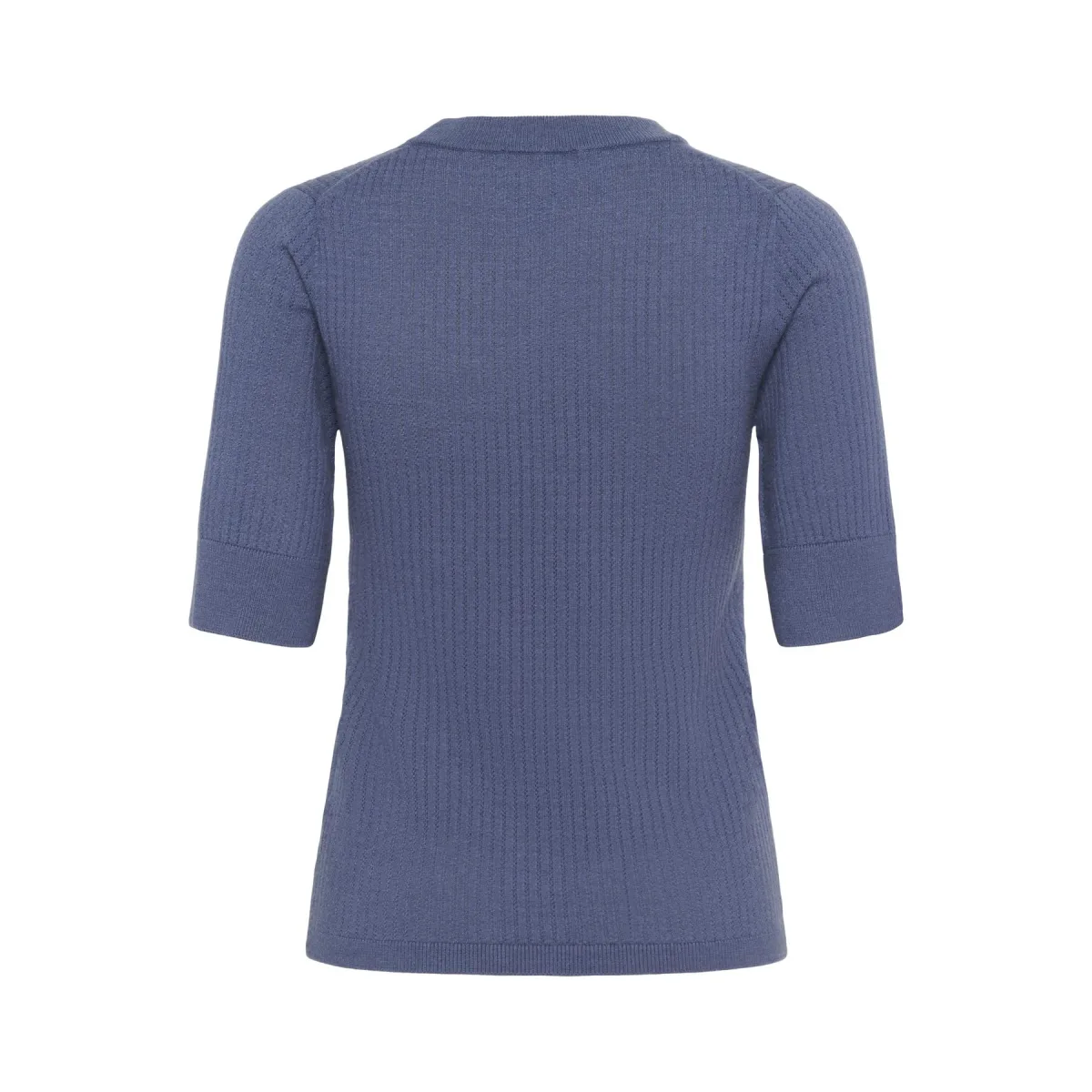 Design: Geribbelde kraag; Materiaal: Knitwear; Halstype: Ronde hals; Motief: Effen; Details: Mesh; Extra's: Fully fashioned; Pasvorm: Slanke pasvorm; Armlengte: Halve mouw; Lengte: Normale lengte