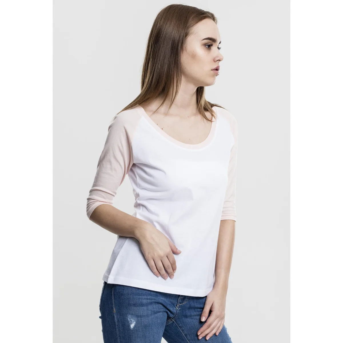 Dit comfortabele T-shirt in 100% katoen heeft driekwart mouwen in contrasterende kleuren en een wijde halsuitsnijding. Zo ziet het er vrouwelijk en natuurlijk cool uit. Koop het contrast 3/4 raglan T-shirt voor dames van URBAN CLASSICS in je favoriete kleuren!Samenstelling: 100% Katoen Single Jersey 140 GSM