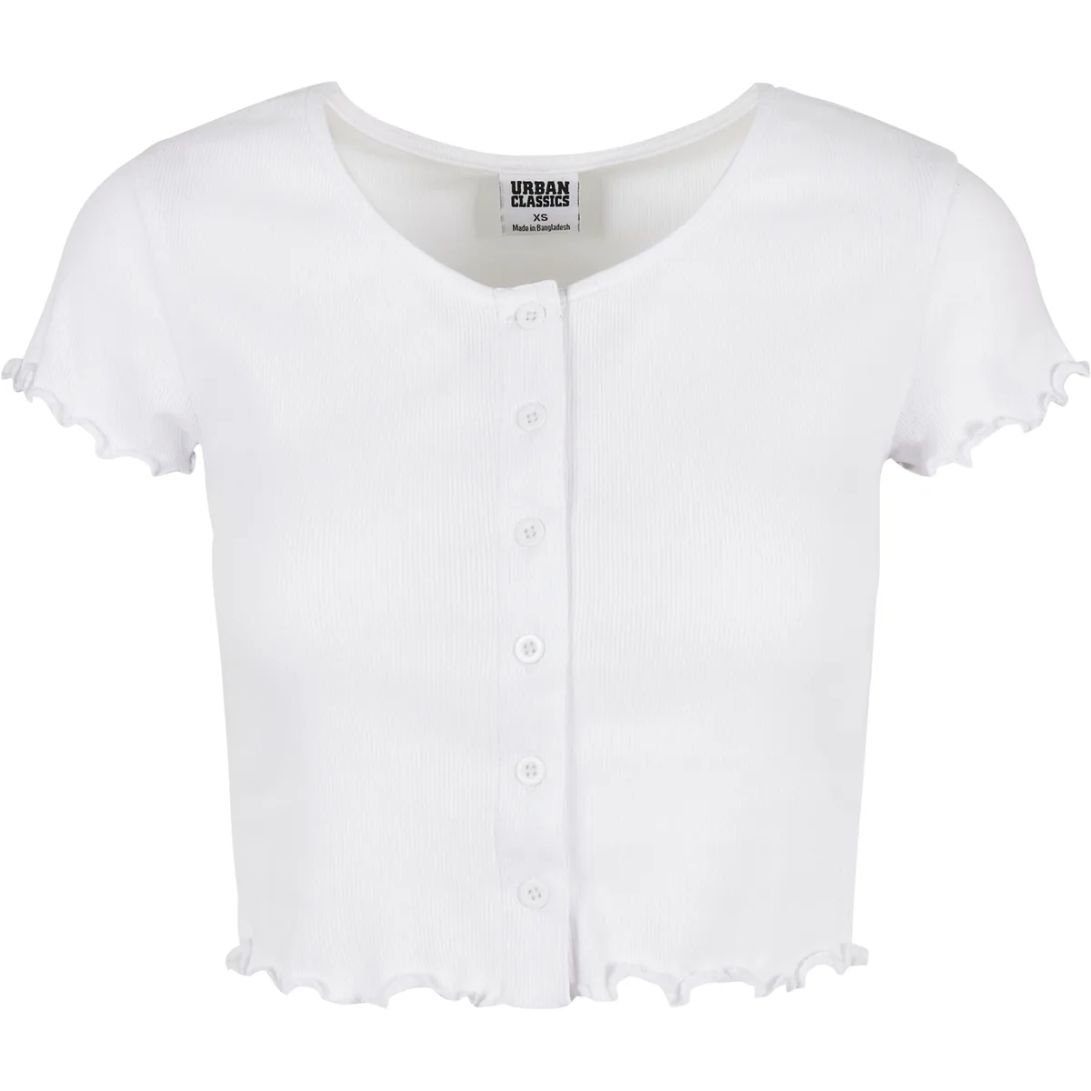 Dames-T-shirt Urban Classics cropped button up rib-grandes tailles Prijzen
