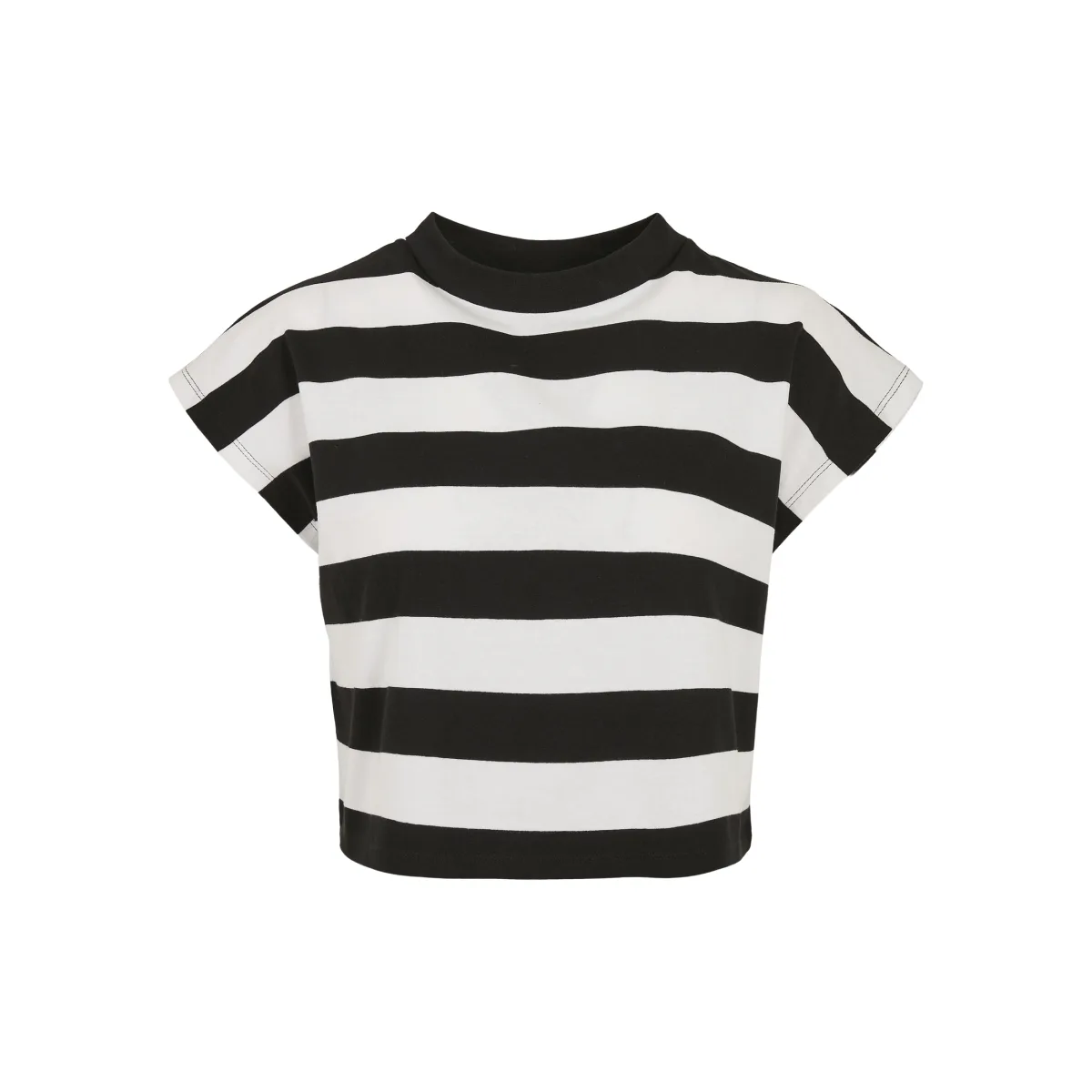 De korte snit van dit T-shirt valt in de smaak bij modebewuste dames en versterkt de sex-appeal. De brede contrasterende strepen geven zelfvertrouwen en worden ondersteund door de extravagante snit van dit korte T-shirt. Het heeft bovendien een brede geribbelde halslijn en sportieve schuine mouwen. Zo kun je je gevoel voor huid en mode laten zien. Geniet ook van een uitzonderlijk comfort dankzij de 100% katoen die is gebruikt. Oberstoff 1 : 100% Baumwolle, Yarn Dyed, 180 GSM