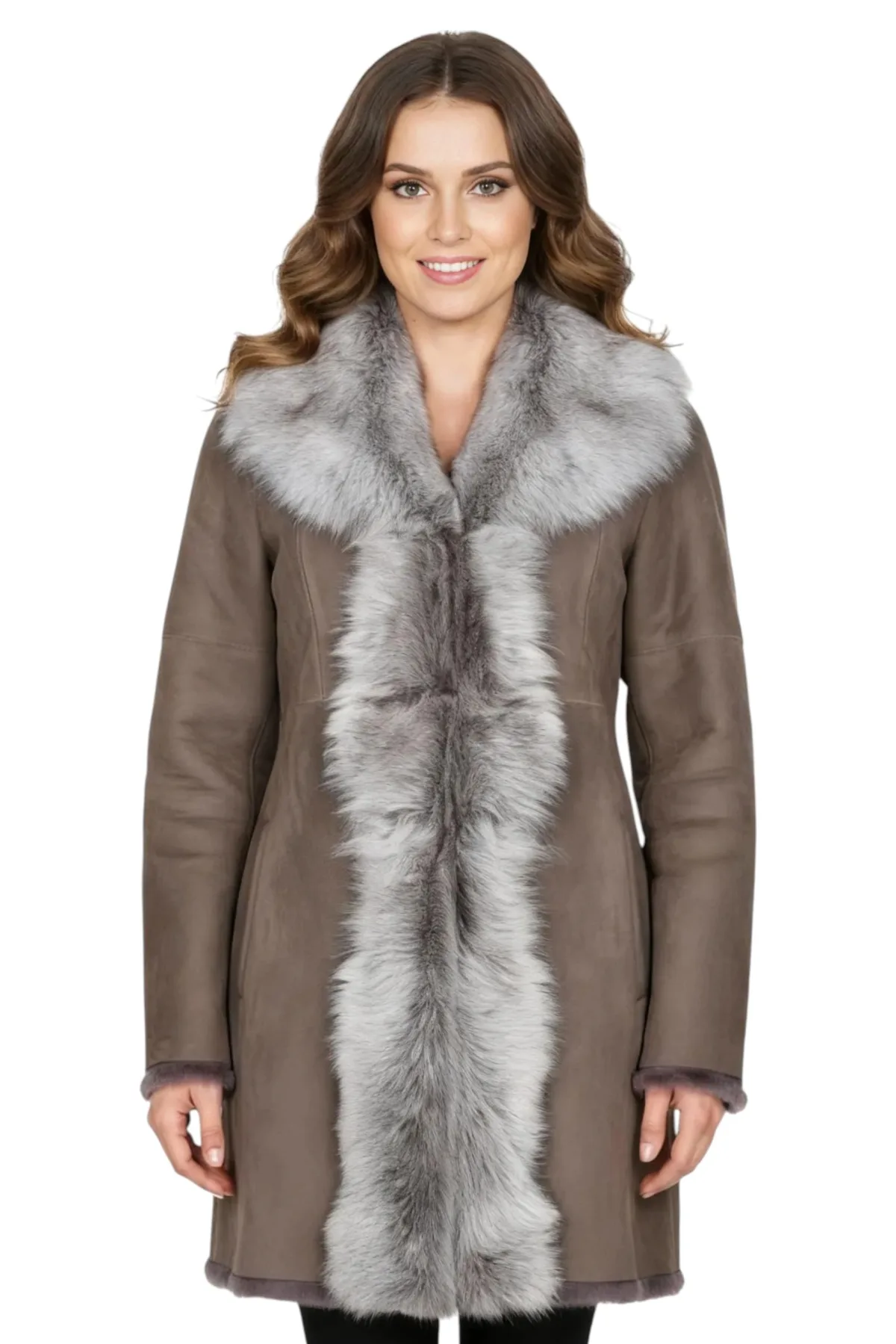 Dames Taupe Toscana Schapen Suede Trenchcoat Celeste