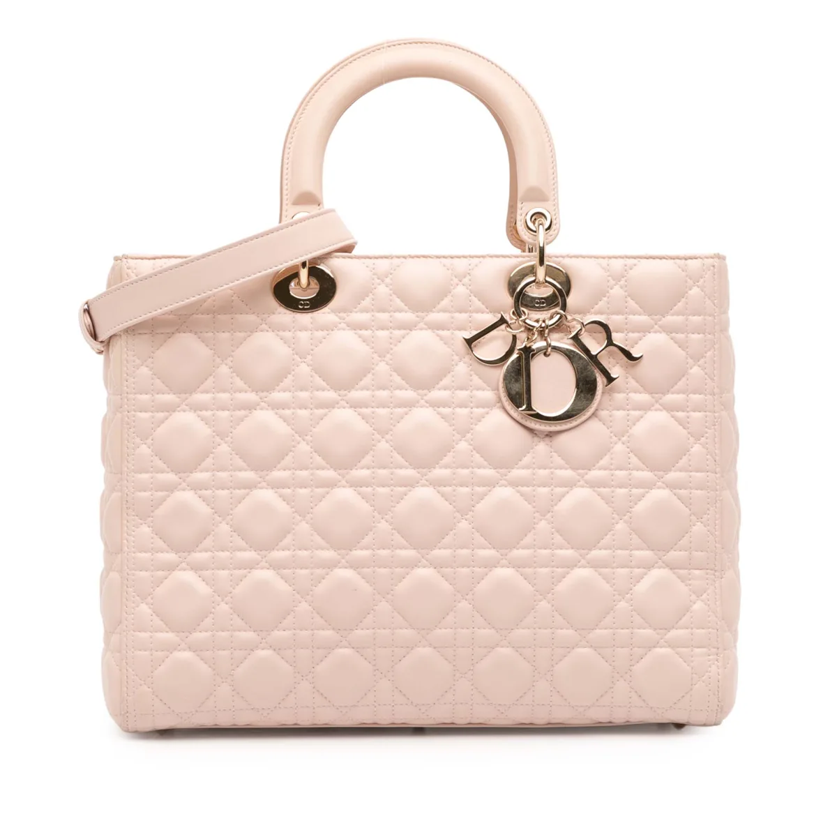Omarm tijdloze elegantie en straal moeiteloze stijl uit. Deze iconische Lady Dior-handtas verhoogt uw verfijning. Gemaakt van lamsleer met Cannage-stiksel, is de aantrekkingskracht tijdloos. De met een pale gold-finish afgewerkte metalen DIOR-charme voegt een vleugje luxe toe. Draag hem in de hand met de bovenste handgreep, of draag hem crossbody met de afneembare schouderband. Het gequiltte leer biedt een luxueus gevoel. Duurzame constructie zorgt voor blijvende schoonheid. Perfect om zowel dagelijkse als speciale gelegenheidsoutfits naar een hoger niveau te tillen. Afmetingen: 26 x 31,5 x 9 cm Conditiebeoordeling: B+ Informatie over de conditie: Buitenkant achterkant versleten. Buitenkant achterkant bevlekt met andere. Onderkant buitenkant versleten. Hoeken buitenkant versleten. Versieringen gekrast. Voorkant buitenkant bevlekt met andere. Handvat buitenkant gekrast. Praktische bevestiging gekrast. Bovenkant buitenkant gesneden stiksel bijgeschilderd versleten. Rits gekrast.