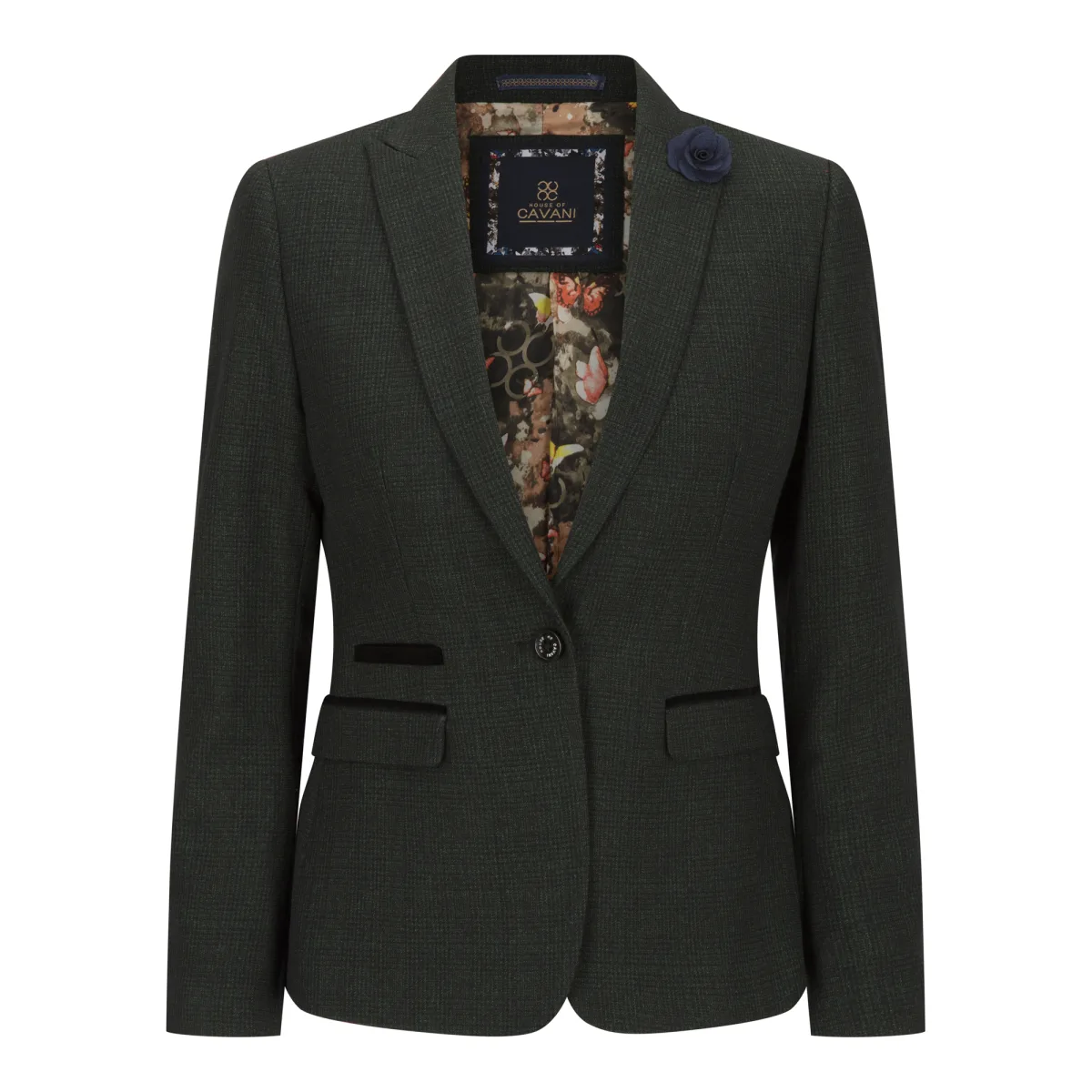 Dames Tweed Groen Geruit Blazer Wollen Klassieke Jas