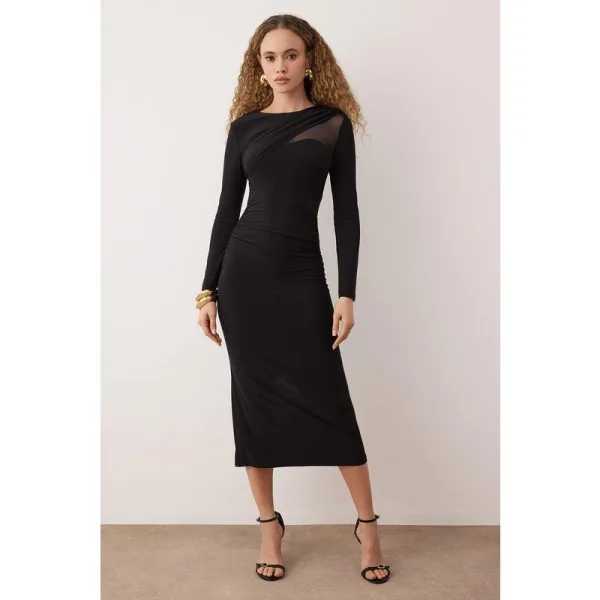 Dames Unifarben Midi Lange Cocktail Bodycon Jurk Prijzen