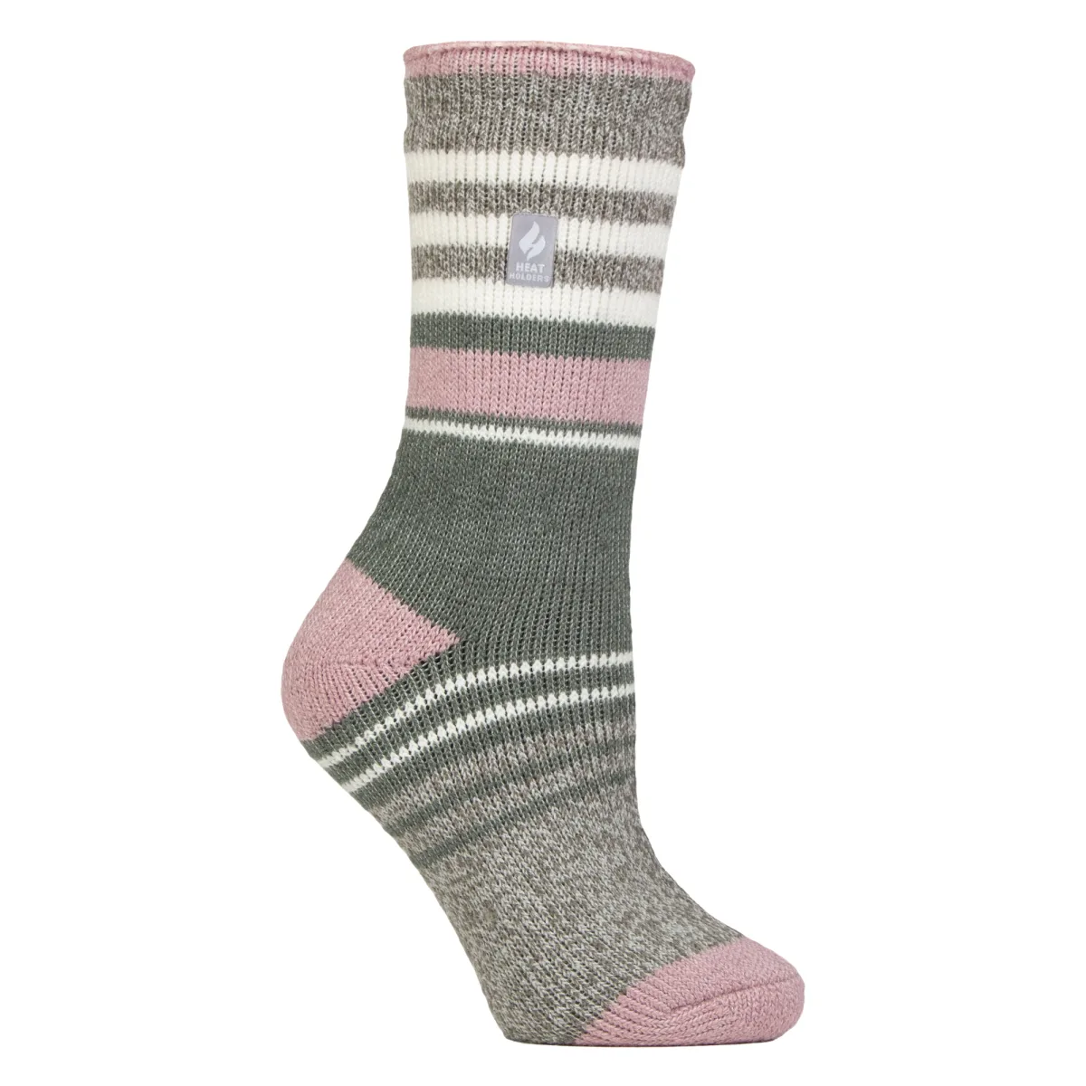 Heat Holders - Dames Sokken met Brede Strepen: Blijf gezellig en stijlvol met de Heat Holders Dames Sokken met Brede Strepen, perfect om je voeten warm en comfortabel te houden tijdens koudere dagen. Gemaakt van geavanceerd thermisch garen, bieden deze sokken uitzonderlijke isolatie en zachtheid, wat zorgt voor superieure warmte voor de hele dag. De zachte geborstelde binnenkant houdt warme lucht dicht bij je huid, waardoor deze sokken een essentieel accessoire voor de winter zijn. Verkrijgbaar in twee elegante kleurcombinaties met brede strepen - Crème/Verbleekt Koraal en Zwart/Mulberry - voegen deze sokken een vleugje charme toe aan je garderobe. Het ontwerp met brede strepen is zowel tijdloos als veelzijdig, perfect om te combineren met loungewear of casual outfits. Ontworpen voor maten 37-41, zijn deze sokken in één maat praktisch en stijlvol voor vrouwen die warmte en elegantie zoeken. Of je nu thuis bent of onderweg, deze sokken bieden ongeëvenaard comfort en gezelligheid. Extra productdetails: - Dames Sokken met Brede Strepen - Verkrijgbaar in Crème/Verbleekt Koraal en Zwart/Mulberry - Geavanceerd Thermisch Garen - Zachte Geborstelde Binnenkant - Warme en Stijlvolle Ontwerp - Eén Maat Past Meesten