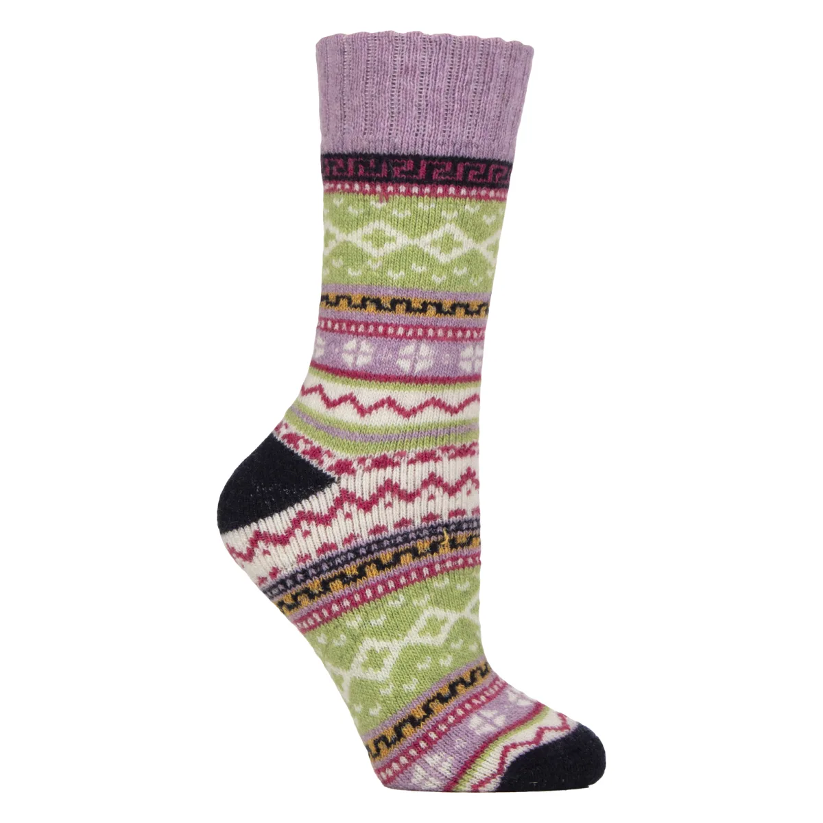 Country Pursuit - 1 Pack Dames Hebrides Wandelsokken: Stap in comfort met de Country Pursuit Hebrides Wandelsokken, nu speciaal ontworpen voor vrouwen. Gemaakt van een superzachte Fairisle wolmix, bieden deze sokken natuurlijke isolatie om je voeten warm en knus te houden tijdens koud weer. Of je nu de natuur ingaat of binnenblijft, ze bieden de perfecte combinatie van comfort, duurzaamheid en stijl voor dagelijks gebruik. Het klassieke Fairisle patroon geeft een charmante, traditionele uitstraling, terwijl de middelgrote brei ideaal is om te combineren met laarzen of winterschoenen. De ribgebreide manchette zorgt voor een perfecte pasvorm die op zijn plaats blijft, en de gewatteerde zool biedt ondersteuning waar dat het meest nodig is voor lange wandelingen of langdurig gebruik. Deze sokken zijn perfect voor wandelen, hiken of relaxen thuis, en bieden zowel prestatie als warmte. Verkrijgbaar in zachte vrouwelijke tinten die passen bij je seizoensgarderobe. Extra productdetails: Materiaal: Superzachte Fairisle wolmix Maten: UK 4-8 Kleuren: Lila, Havermout, Roze Stijl: Gewatteerde bootsokken voor buitengebruik Ideaal voor hiken, wandelen of wintercomfort Ribgebreide top voor een goede pasvorm Warm en ademend Machinewasbaar