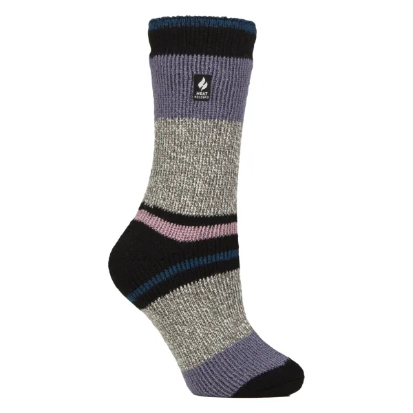 Heat Holders - Dames Blok Gemengde Strepen Sokken: Blijf warm en stijlvol met de Heat Holders Dames Blok Gemengde Strepen Sokken, perfect om je voeten comfortabel te houden tijdens koudere maanden. Ontworpen met oog voor comfort en duurzaamheid, zijn deze sokken gemaakt van een premium mix van materialen, wat zorgt voor zachtheid en maximale isolatie. De thermische voering houdt warme lucht dicht bij de huid, wat zorgt voor superieure warmte-retentie voor comfort de hele dag door. Verkrijgbaar in drie stijlvolle kleurcombinaties - Zwart/Donker Blauwgroen, Cabernet/Koraal en Charcoal/Ice Sage - zijn deze sokken perfect voor het toevoegen van een vleugje kleur aan je wintergarderobe. Elk paar heeft een gemengd streepdesign dat zowel modern als veelzijdig is, waardoor ze geschikt zijn voor casual of thuiswear. Deze sokken zijn voorzien van een one-size-fits-most ontwerp, passend voor maten 4-8, en zijn ideaal voor vrouwen die op zoek zijn naar de perfecte mix van functionaliteit en stijl. Of je nu thuis ontspant of de kou buiten trotseert, de Heat Holders sokken bieden ongeëvenaard warmte en comfort. Extra Productdetails: - Dames Blok Gemengde Strepen Sokken - Verkrijgbaar in Zwart/Donker Blauwgroen, Cabernet/Koraal en Charcoal/Ice Sage - Thermische Isolatie - Zacht en Comfortabel - Stijlvol Ontwerp - One Size Fits Most