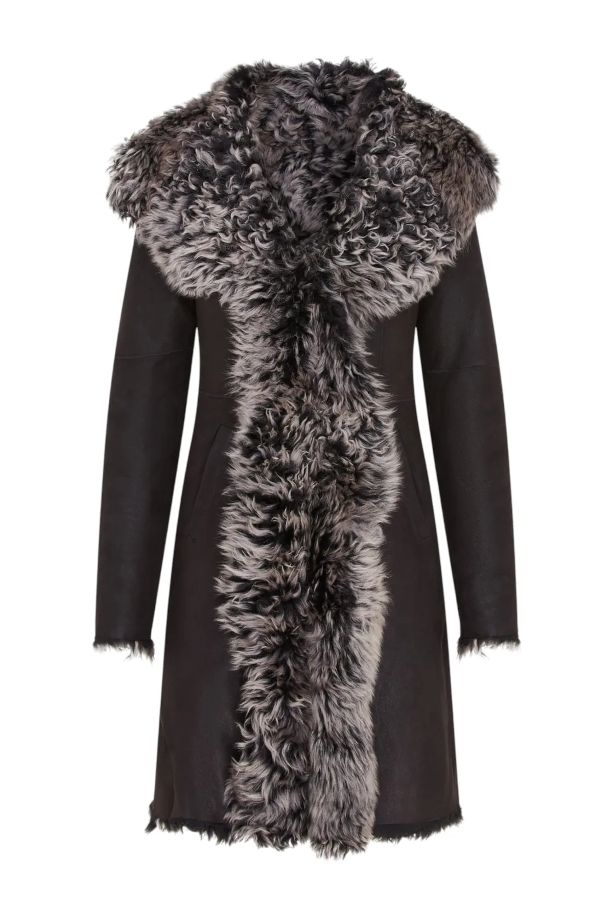 Dames zwarte Toscaanse schapenvacht leren trenchcoat met capuchon – Coast Prijzen
