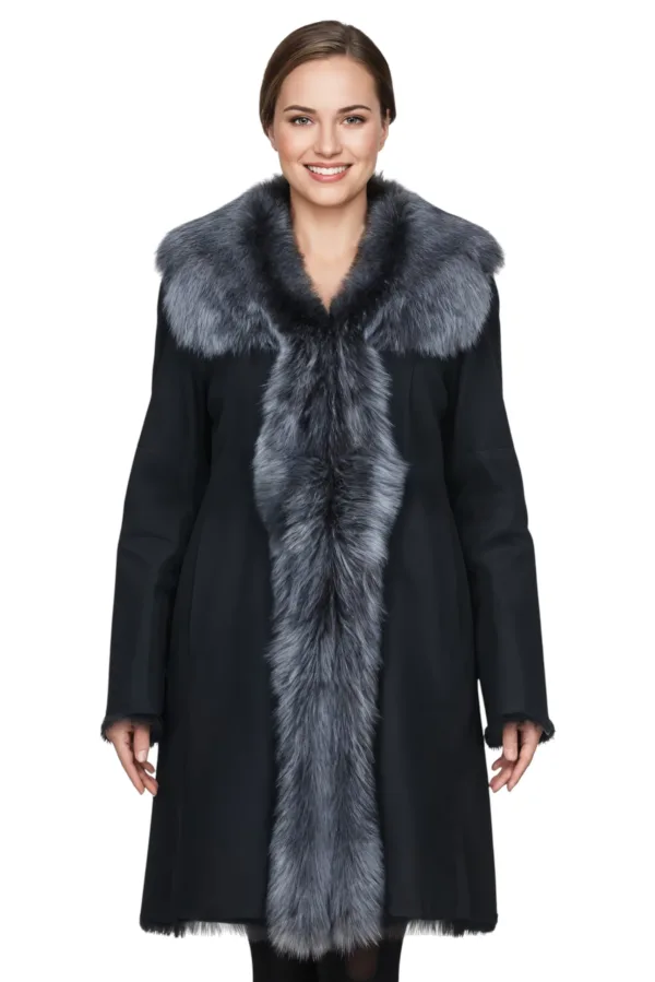Dames zwarte zilveren Toscaanse schapen sude trenchcoat - Celeste