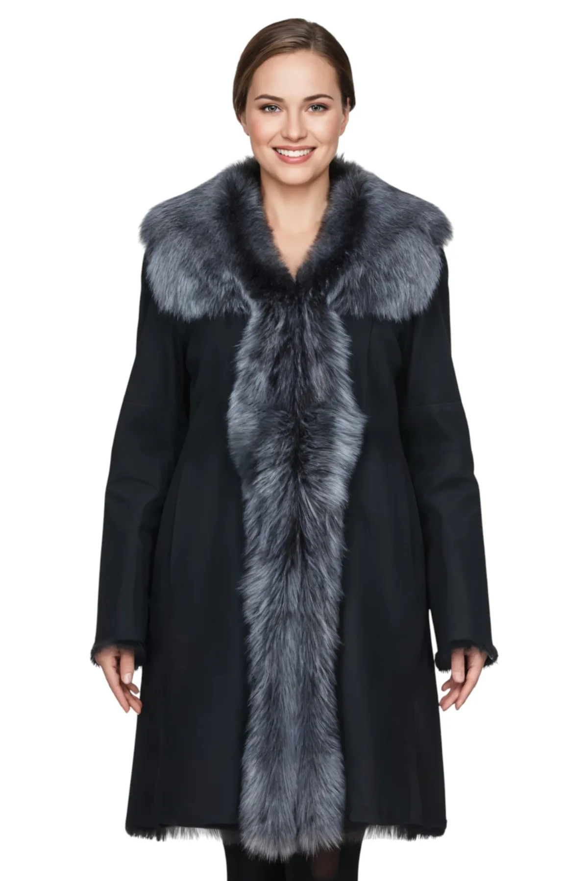 Dames zwarte zilveren Toscaanse schapen suede trenchcoat Celeste