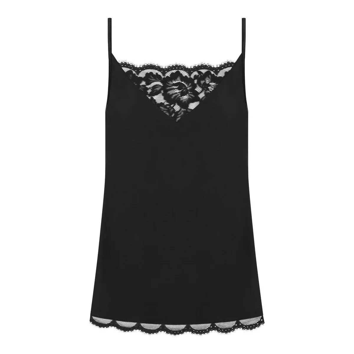 Materiaal: Viscose; Halstype: V-hals; Motief: Effen; Soort bandjes: Spaghettibandjes; Details: Kant; Pasvorm: Normale pasvorm; Armlengte: Mouwloos; Lengte: Normale lengte