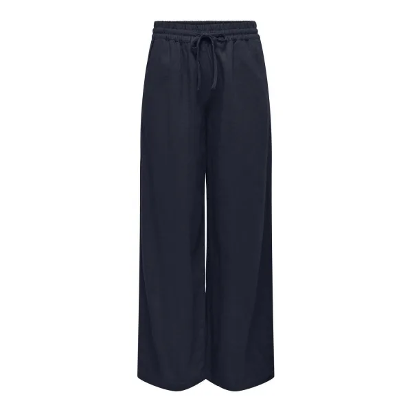 Specificaties: * Pasvorm: regular fit; high-waist taille; wide leg; elastische tailleband met aantrekkoord * Kleur: navy * Materiaal: 55% linnen - 45% viscose