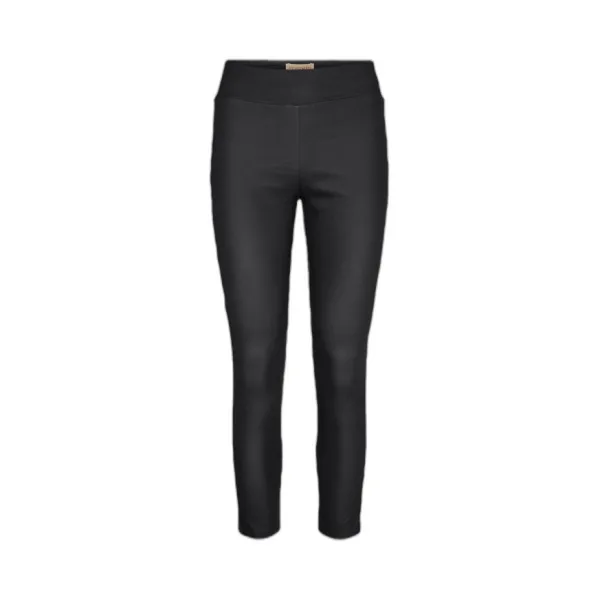 Damesbroek van Soyaconcept;Viscosemix met stretch;Super skinny fit;Model 'Pam';Leerlook;Brede band;Bandwijdte bij maat 36: 35 cm;Binnenbeenlengte bij maat 36: 69 cm