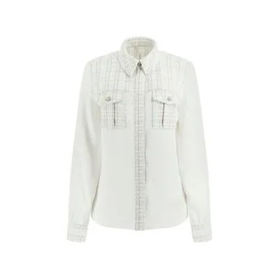 Overhemd van geweven stof met details in bouclé tweed.Standaard overhemdkraag en lange mouwen.Model verrijkt met glanzende metallic vezels.Borstzakken met knoopsluiting.Voorkant met verborgen knoopsluiting.Totaallengte: 62 cm / 24,5 in.Mouwlengte: 63 cm / 24,5 in.Het kledingstuk op de afbeelding is maat S.Raadpleeg onze Maattabel hierboven.Voldoet aan de aangegeven maat.