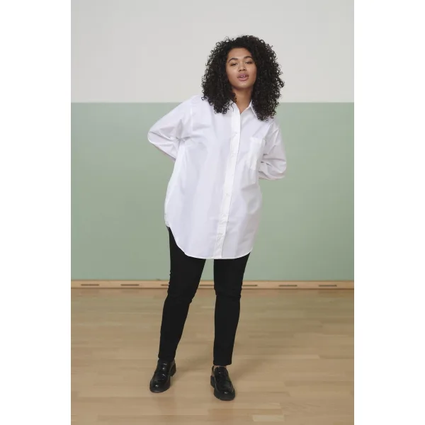 Blouse type: Klassieke blouse; Design: 2-knoops manchetten, Gevoerde zoom/rand, Knop placket, Ronde zoom, Borstzak; Motief: Effen; Kraag: Kentkraag; Extra's: Op staal naden, Lichte stof; Pasvorm: Losse pasvorm; Armlengte: Lange mouw; Lengte: Lange pasvorm