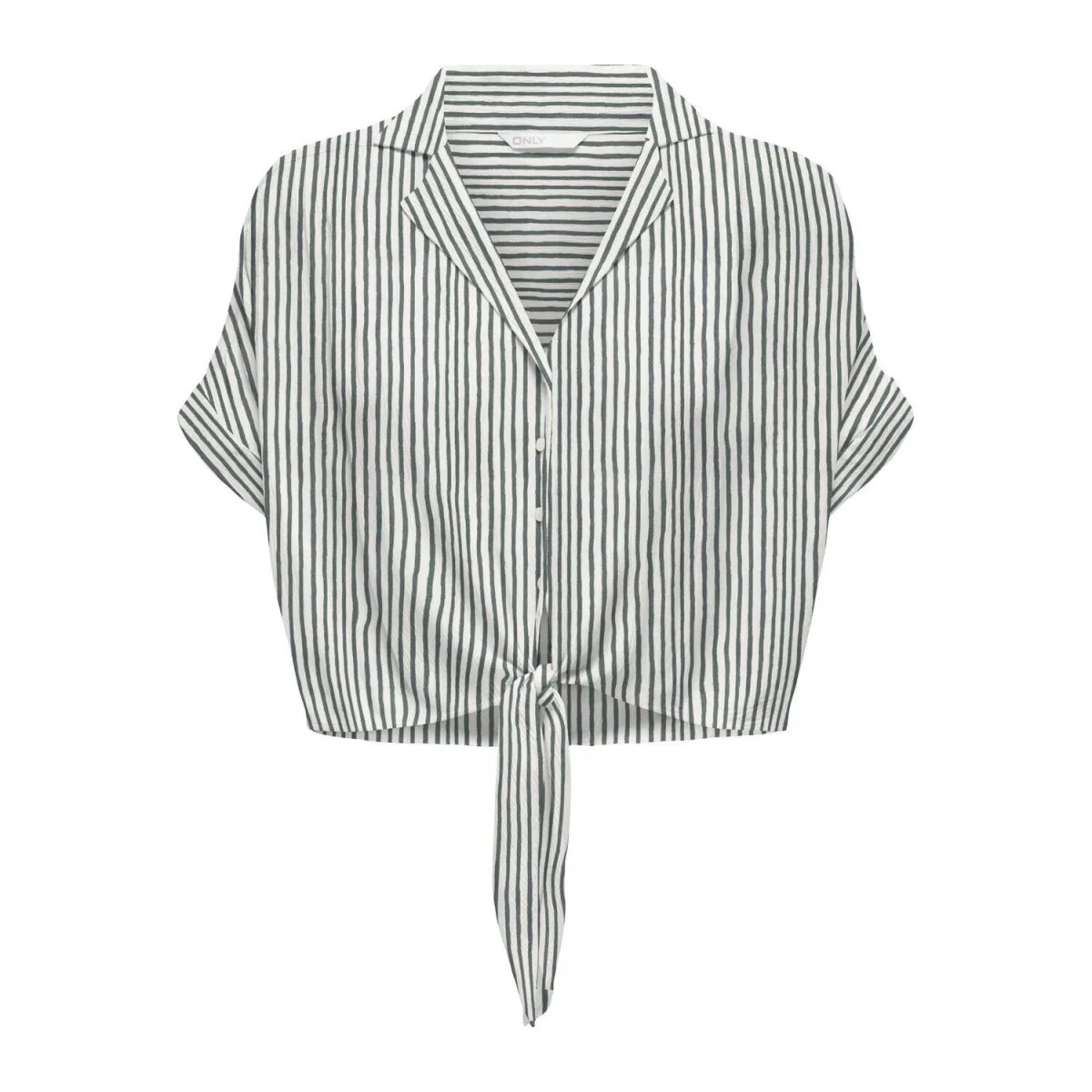 Blouse type: Klassieke blouse; Design: Revers kraag, Diepe snit/decolleté, Om te knopen/binden; Type sluiting: Knoopsluiting; Materiaal: Viscose; Motief: Gestreept; Details: Gedrapeerd; Extra's: All-over patroon, Milieuvriendelijk geproduceerd; Pasvorm: Losse pasvorm; Armlengte: Halve mouw; Lengte: Korte pasvorm