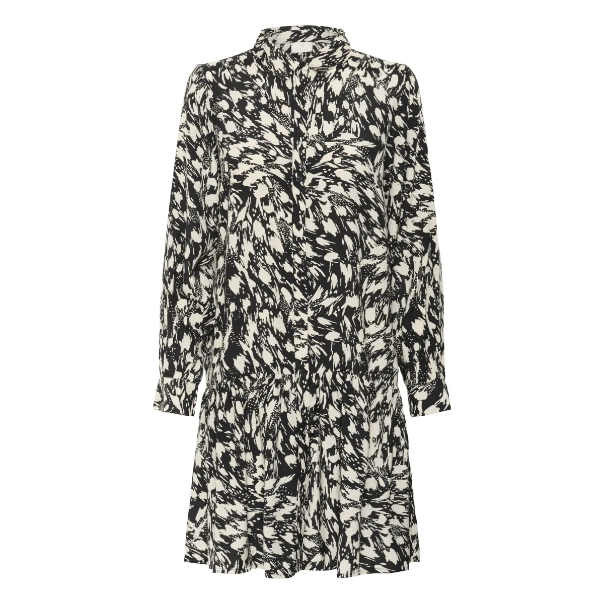 Design: Knop placket, Oversized; Type sluiting: Knoopsluiting; Materiaal: Viscose; Kraag: Kentkraag; Soort bandjes: Normale bandjes; Extra's: All-over patroon; Lengte: Lang/maxi; Pasvorm: Losse pasvorm; Armlengte: Lange mouw