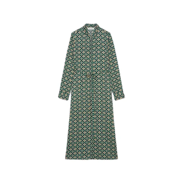 Robe chemisier regular in multicolor viscose twill. Tijdloos, herfst- en wintergeschikt en passend voor alle figuren - de losse pasvorm jurkjes in luchtige stoffen. Dit chemisier-model valt vooral op door zijn grafische patroon, de luchtige viscose twill en het vrouwelijke design. De relaxte pasvorm volgt de contouren van het lichaam, met een uitlopende rok tot halverwege de kuit. De jurk heeft een klassieke Kent-kraag, een smalle en verborgen knoopsluiting over de hele lengte en blouse-achtige mouwen met manchet. De jurk heeft het potentieel om een favoriet stuk te worden en is zowel geschikt voor een snelle en eenvoudige dagelijkse look als voor een glamoureuze avond - afhankelijk van de keuze van accessoires. De jurk is niet gevoerd - de taille kan naar wens geaccentueerd worden met de fijn te knopen riem. Materiaal: 100% Viscose in ECOVERO™ van LENZING™. Vloeibare viscose twill. Zachte afwerking. Het model is niet gevoerd. Met een allover-print.
