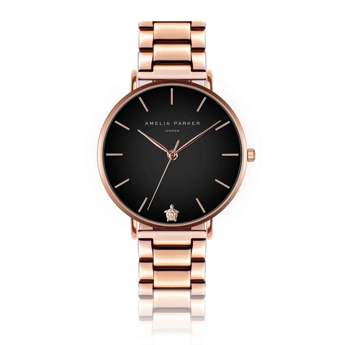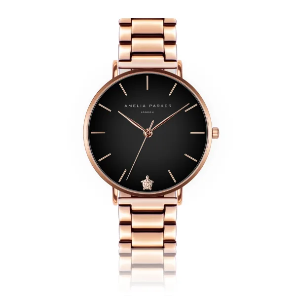 Amelia Parker Middernachtelijk zwart met een vleugje levendig goud trekt het oog naar de slanke ultra wijzerplaten en naar het kenmerkende tortue juweel van de zee. Dit horloge is ontworpen voor wie zich laat inspireren door de prachtige kleine details van onze natuurlijke wereld.Modelnaam: Midnight Moon Rose gold LinkKastmaat mm: 38Kastmateriaal: MetaalsamenstellingKleur kast: Goud rose Kastbeplating: Ion-plating (IP)Armbandmaat mm: 18×18Materiaal band: Roestvrij staalKleur band: Goud rose Kleur wijzerplaat: Zon zwartGlas: Gehard mineraalglasAchterkant kast: Roestvrij staalWaterbestendigheid: 3 ATM