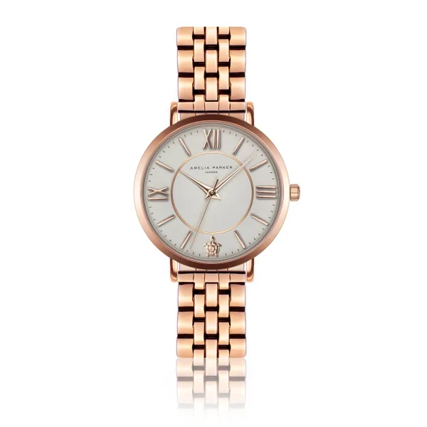 Met de klassieke combinatie van gouden Romeinse cijfers op een crème achtergrond, voor Amelia Parker, presenteert dit horloge een tijdloze maar totaal unieke stijl, geaccentueerd door het onmiskenbare tortue juweel vanAmelia Parker.Modelnaam: Petite Classique Rose gold LinkKastmaat mm: 32Kastmateriaal: MetaalsamenstellingKleur kast: Goud rose Kastbeplating: Ion-plating (IP)Bandmaat mm: 14×14Materiaal band: Roestvrij staalKleur band: Goud rose Kleur wijzerplaat: WitGlas: Gehard mineraalglasAchterkant kast: Roestvrij staalWaterbestendigheid: 3 ATM