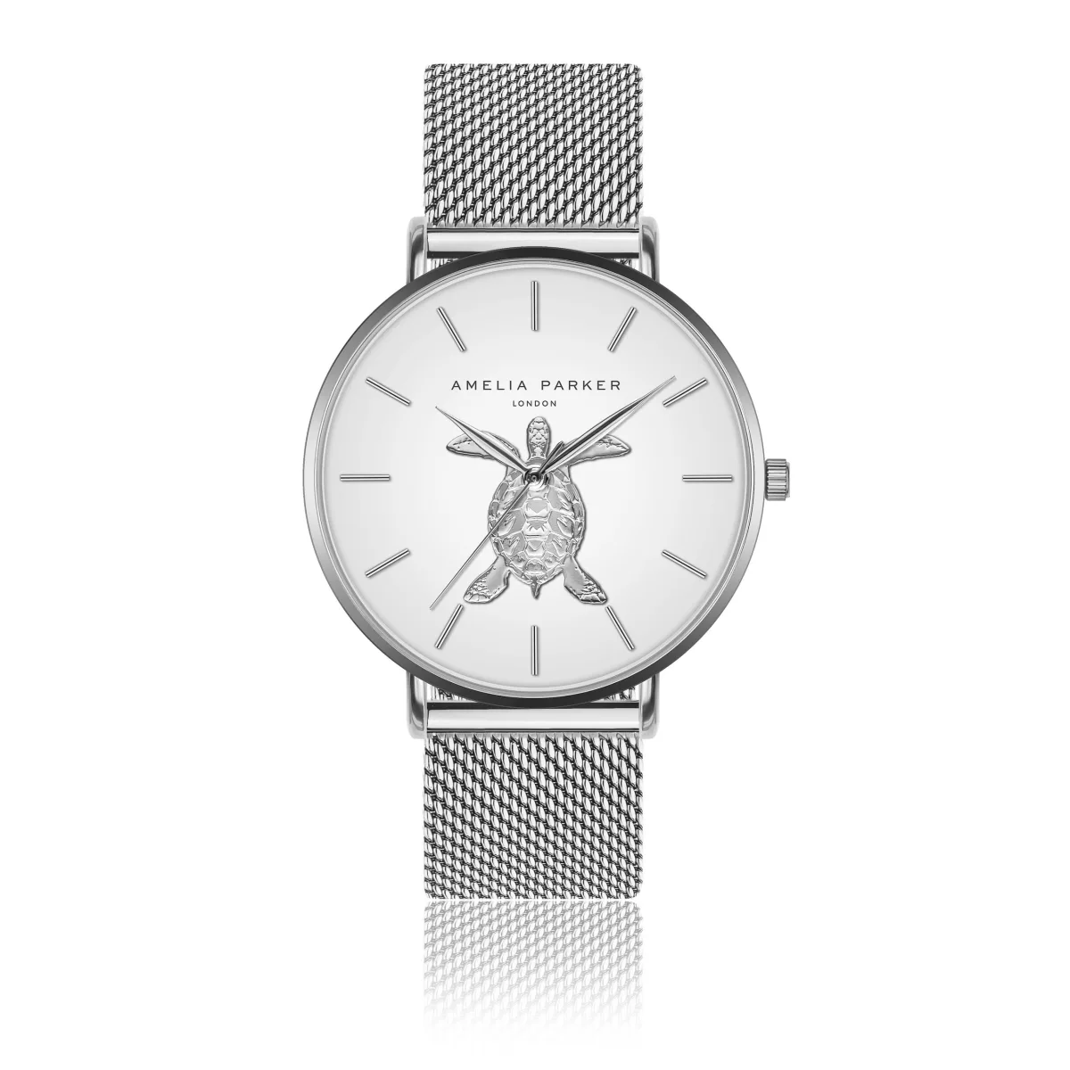 Als je onze Sea Turtle en Rose Turtle stukken leuk vond, weten we zeker dat je ook ons zilveren Sand Turtle horloge leuk zult vinden! De witte wijzerplaat van de Sand Turtle met de handgemaakte zilveren tortue vertegenwoordigt de schoonheid en esthetiek van de natuur.Artikelnummer: AE1-B018SStyle Name: Sand Turtle Silver MeshCase Size mm: 38Case Material: Metal CompositionCase Colour: SilverCase Plating: Ion-plating (IP)Afmetingen band mm: 18×18Materiaal band: Roestvrij staalKleur band: ZilverKleur wijzerplaat: WitGlas: Gehard mineraalglasAchterkant kast: Roestvrij staalWaterbestendigheid: 3 ATM