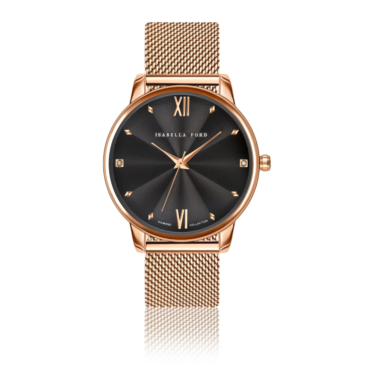 Isabella Ford heeft oude en nieuwe concepten prachtig gecombineerd met het luxueuze Coco diamanten horloge. Het komt in een rijk, opvallend chocoladebruin met gouden wijzers en uurmarkeringen rose, prachtig in balans gebracht door twee met de hand gezette echte diamanten. Isabella Ford draagt dit uurwerk, met zijn vrouwelijke charme, op aan onverschrokken fashionista's die anders durven te zijn.Stijlnaam: Coco Set Kastmaat mm: 38Materiaal kast: Metaal samenstellingKleur kast: Goud rose Kast plating: Ionische plating (IP)Armbandmaat mm: 18X18Materiaal band: Roestvrij staalKleur band: Rose Goud/BruinKleur wijzerplaat: ChocoladebruinGlas: Gehard mineraal kristalDiamant details: Cut: Single; Clarity: I-3; Kleur: Upper crystal;Case back: Roestvrij staalWaterbestendigheid: 3 ATMInternationale garantie: 2 jaar