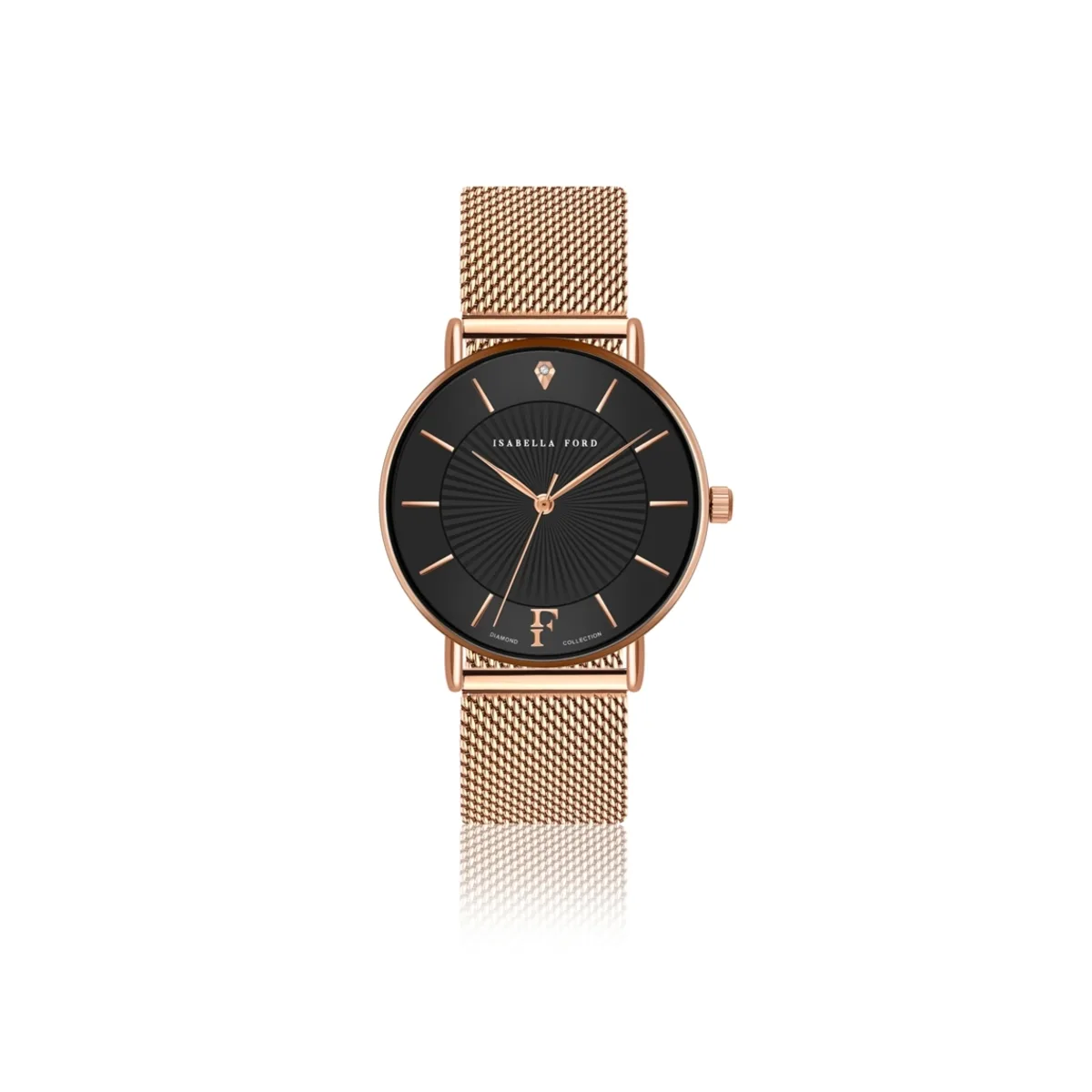 Het is een van de drie Isabella Ford dag- en nachtklokken in echte diamant, elk met zijn eigen onweerstaanbare look. Uitzonderlijk gedurfd en kenmerkend voorIsabella Ford, Naomi is ontworpen om altijd gedragen te worden door actieve, trotse en gedurfde vrouwen.Modelnaam: Naomi Rose Goud MeshKastmaat mm: 36Materiaal kast: Metaal samenstellingKleur kast: Goud rose Kast plating: Ion-plating (IP)Armbandmaat mm: 18×18Armbandmateriaal: Roestvrij staalArmbandkleur: Goud rose Wijzerplaatkleur: ZwartGlas: Gehard Mineraal KristalDiamantdetails: Cut: Single; Clarity: I-3; Kleur: Upper crystal;Case back: Roestvrij staalWaterbestendigheid: 3 ATM