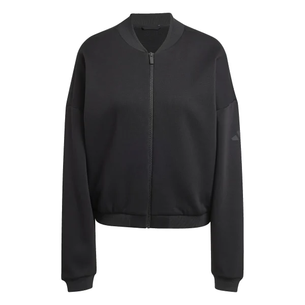 Design: Geribbelde kraag, Geribd ceintuurtje, Overcut schouder, Zakken aan de zijkant; Type sluiting: Ritssluiting; Type jas: Bomberjack; Voering: Niet gevoerd; Materiaal: Sweatstof; Halstype: Ronde hals; Motief: Effen; Extra's: Op staal naden, Voelt zacht aan, Label print; Pasvorm: Losse pasvorm; Armlengte: Lange mouw; Lengte: Normale lengte