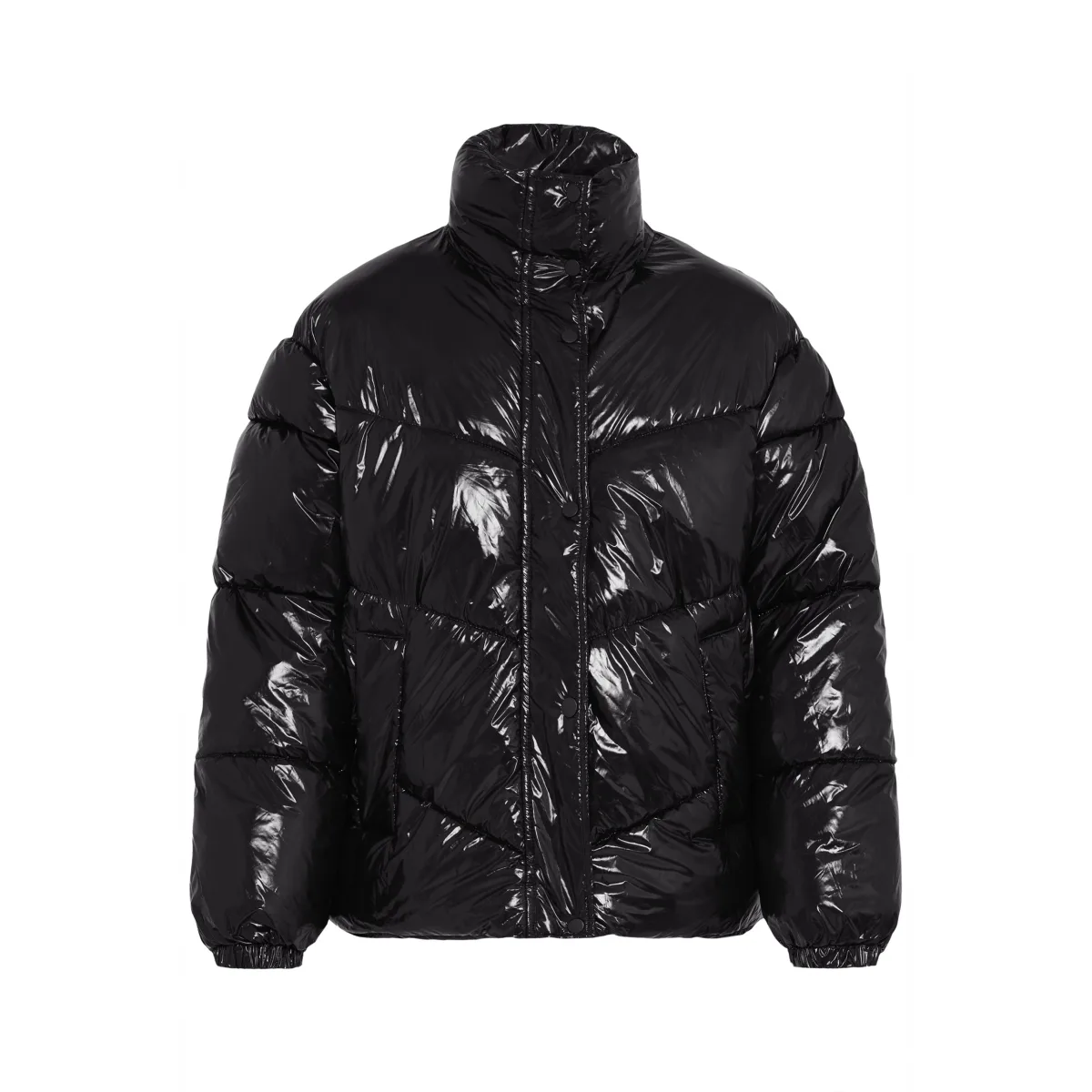 Design: Staande kraag, Verborgen rits, Zakken aan de zijkant; Type sluiting: Ritssluiting; Type jas: Gewatteerde jas; Voering: Licht gevoerd; Motief: Effen; Extra's: Glanzend, Stiksels, Op staal naden; Pasvorm: Normale pasvorm