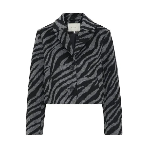 Dit cropped blazerjasje met opvallend zebramotief heeft een getailleerde pasvorm, scherpe reverskraag, lange mouwen en een knoopsluiting.