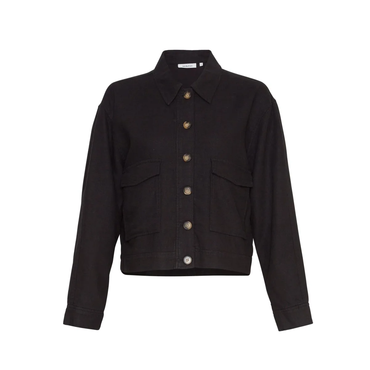 Kort jackHet Jovene jack is een kort jack van linnenmix met een overhemdkraag en zakken aan de voorkant. Dit lichtgewicht jack kan gemakkelijk gedragen worden als alternatief voor je blazer jack, of als buitenjack voor warmere dagen. Draag het met jeans of een rok.