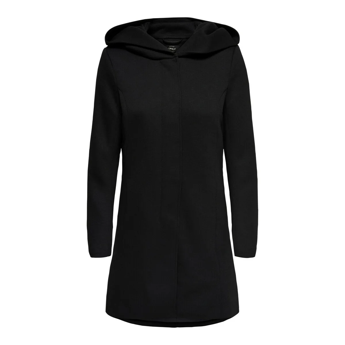- Jas met gedrapeerde capuchon- Verborgen voorsluiting- 2 paspolzakken vooraan- Lengte: 85 cm in maat M- Het model draagt maat S