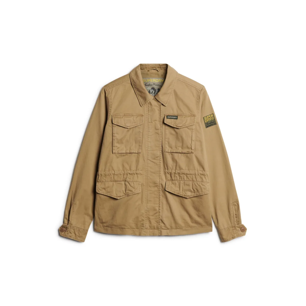 Militaire kleding is altijd een source bron van mode-inspiratie geweest. Klassieke stijlen hebben generaties overbrugd en onze militaire jas M65 is een eerbetoon aan deze traditie. Je authentieke stijl wordt gesublimeerd met dit iconische stuk. Met zijn gestroomlijnde snit die een rustieke charme behoudt, kan dit jack gedragen worden bij elke outfit van je keuze. Deze jas is ideaal voor tussen het seizoen en combineert comfort en praktisch gemak met stijl vintage. Relaxed fit - de klassieke Superdry snit. Niet te strak, niet te los. Precies goed. Kies je gebruikelijke maat. Klassieke kraag. Sluiting met rits en knoop. Vier zakken met drukknopen. Manchetten met knoopsluiting. Trekkoord aan binnenkant taille. Binnenzak. Badge Superdry Buitenkant:100% katoen Mouwvoering:100% gerecycled polyester Voering:100% katoen